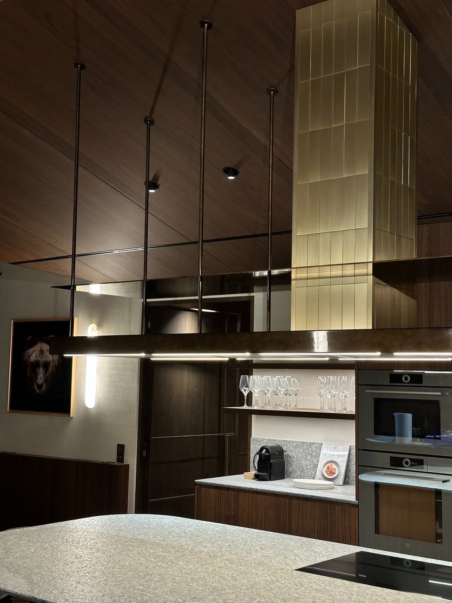 Acier, laiton, inox, aluminium, verre technique ou décoratif, patines, traitements de surface et associations de matériaux : chaque matière est travaillée pour révéler sa texture, sa lumière et son caractère.